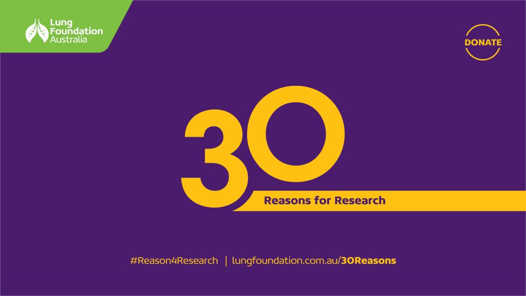 In celebration of our 30th anniversary, we are highlighting 30 Reasons to donate to life-changing lung disease and lung cancer research. For the millions of Australians impacted by lung disease and lung cancer, research means more precious moments with loved ones, a chance to experience their next life milestone, and independence to do the day-to-day activities that many of us take for granted.