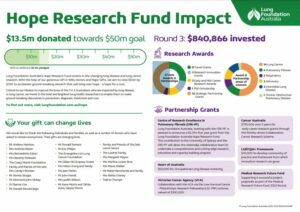 Lung Foundation Australia’s Hope Research Fund invests in life-changing lung disease and lung cancer research. With your help we aim to raise $50m by 2030 to accelerate ground-breaking research that will bring new hope – a hope for a cure.