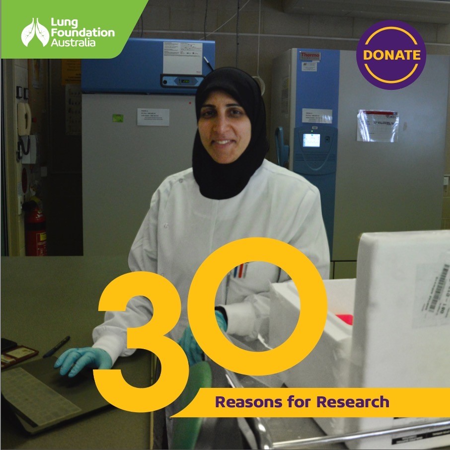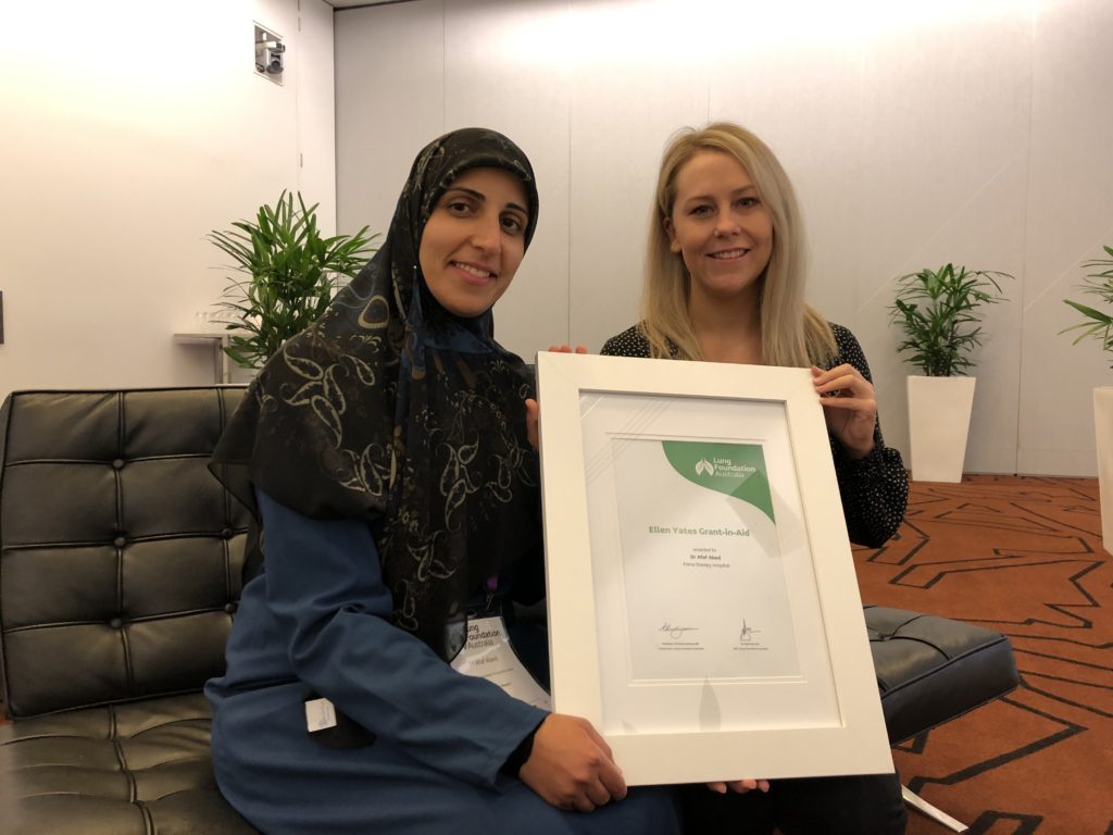 Dr Afaf Abed received the Lung Foundation Australia Ellen Yates Memorial Grant-in-Aid lung cancer research award in 2019.