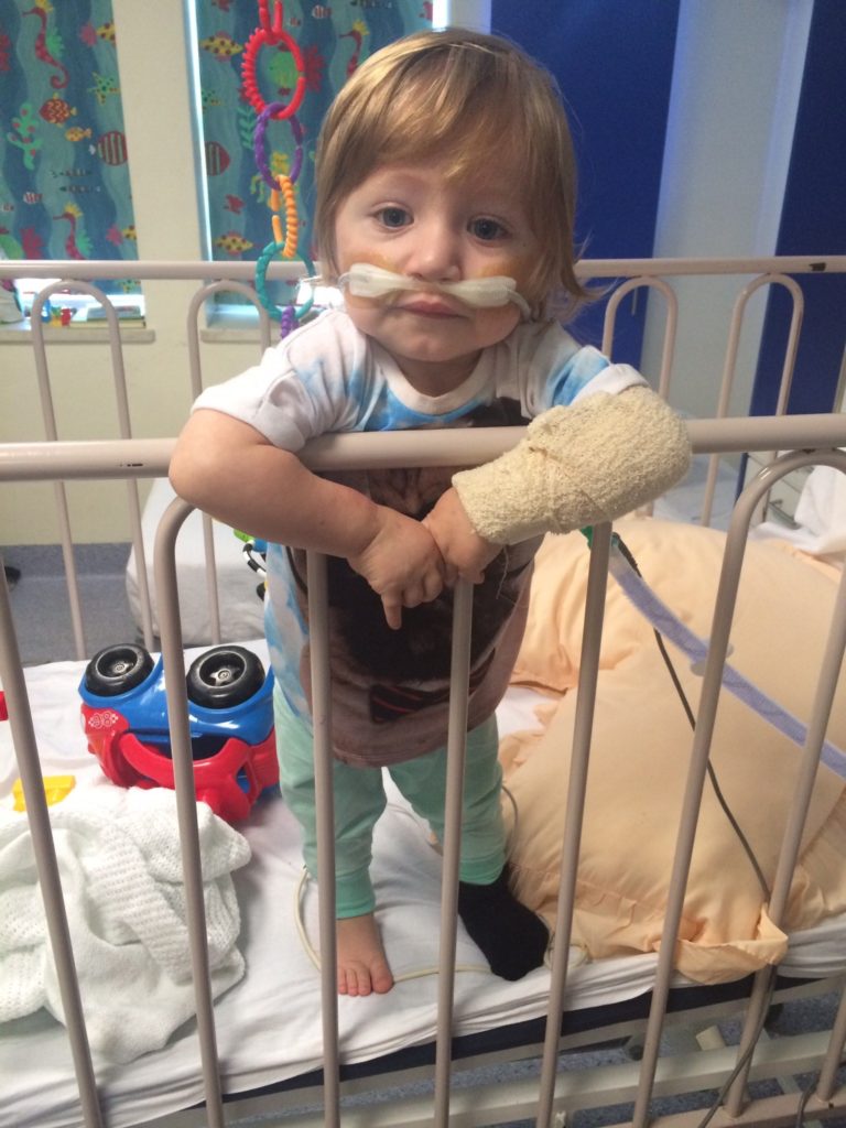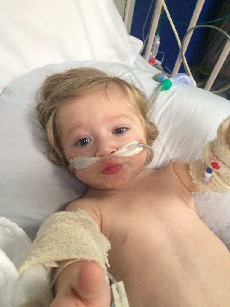 “He was admitted to the ICU and we spent a month in and out of hospital. At times he could hardly breathe, he was always coughing and vomiting and often had temperatures over 40. At one point his entire body was swelling up and he was so sick he could hardly move or breathe.