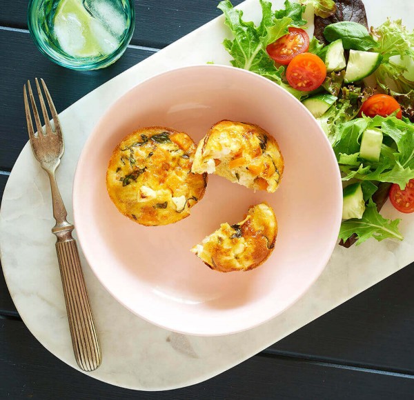 Spoon pumpkin mixture evenly into 12 muffin pan. Pour egg mixture to almost fill muffin holes. Bake for 25 minutes, or until firm and golden.