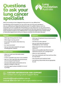 When you are told you have a diagnosis of lung cancer it is a very difficult time. It is hard to know what to ask and easy to forget questions you wish to ask your treating healthcare team.