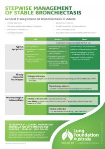 Stepwise management of stable bronchiectasis steps you through general management strategies of bronchiectasis in adults. It discusses: