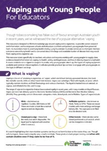 This fact sheet provides evidence-based information about vaping and e-cigarettes for parents and carers of young people.