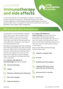 This fact sheet provides an overview of side effects of immunotherapy in lung cancer treatment. The fact sheet also goes into detail of the following: