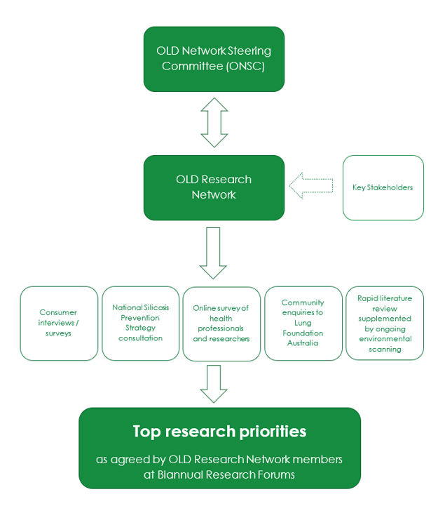 The creation of an OLD Research Network will enhance the capability of, and collaboration between, Australian researchers working in occupational lung health. The resulting priorities, as agreed upon by consumers and other experts, will be disseminated to government and funding bodies. It is expected that this will result in a more coordinated and strategic approach to occupational lung disease research in Australia and will help ensure that occupational lung disease becomes better understood and prevented and that those impacted by occupational lung disease receive access to more effective evidence-based care.